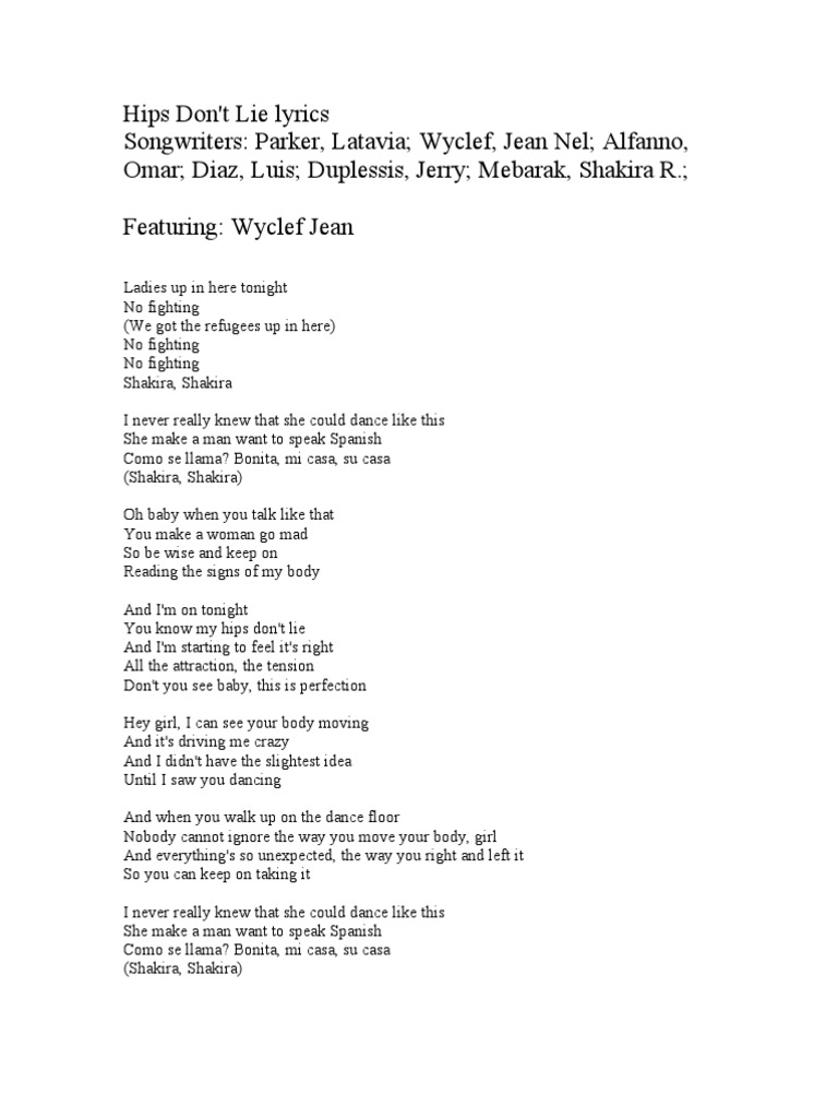 Hips Don T Lie Lyrics Pdf Download